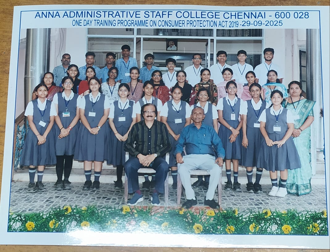 A one-day training on the Consumer Protection Act, 2019 was conducted by Anna Institute of Management for our Class XI Commerce students, as part of a government initiative. The session, led by Dr. Nehemiah and Dr. Vijayathilagam, highlighted consumer rights, responsibilities, and redressal mechanisms.